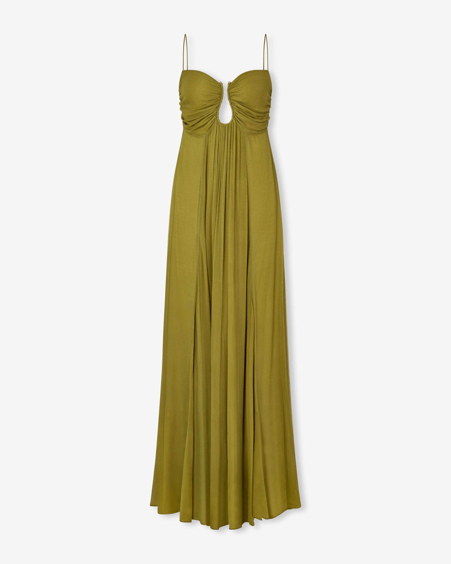 KORA – SUN-WASHED OLIVE RUCHED MAXI DRESS
